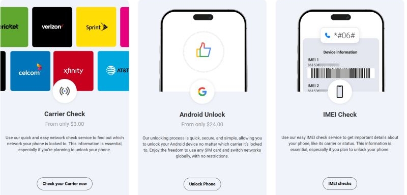Hampir semua layanan unlock IMEI pihak ketiga mengikuti proses yang sama dan di sini ada beberapa unlocker IMEI yang populer.