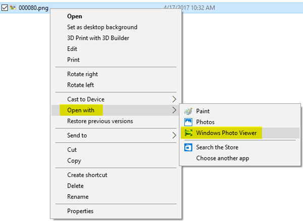- Sekarang, klik kanan pada gambar dan pilihTerbuka denganDari menu konteks, Anda kemudian dapat mengklik Windows Photo Viewer untuk melihat gambar Anda.