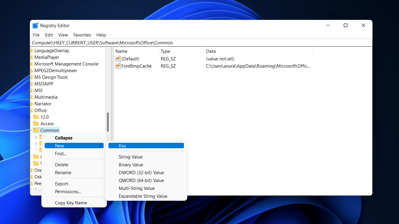 • Computerhkey_current_usersoftwaremicrosoftofficeCommon