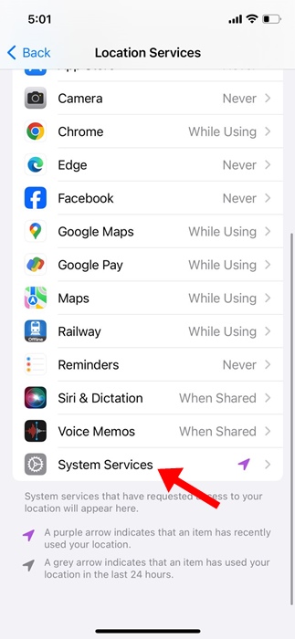 3. Gulir ke bawah dan pilihLayanan Sistem.