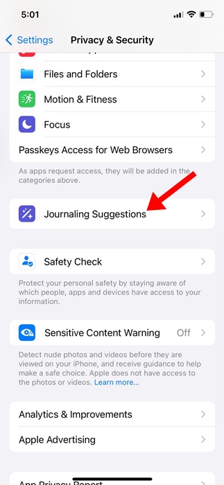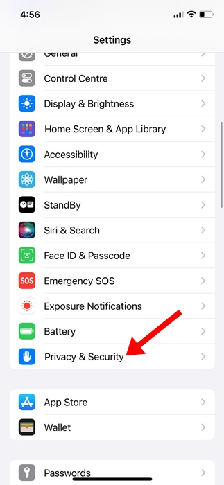 1. LuncurkanPengaturanaplikasi di iPhone Anda dan ketukPrivasi & Keamanan.
