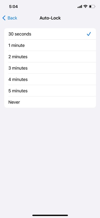 4. Atur Kunci Otomatis ke antara 30 detik hingga 1 menit.