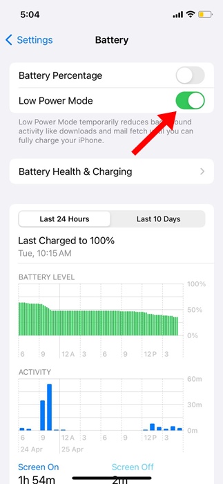 Ini akan segera mengaktifkan Mode Daya Rendah di iPhone Anda. Fitur & proses Latar Belakang tertentu akan dihentikan, namun akan mengurangi konsumsi baterai.