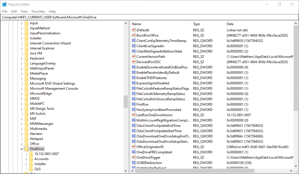 - Kunjungi lokasi ini: ComputerHKEY_CURRENT_USERSoftwareMicrosoftOneDrive