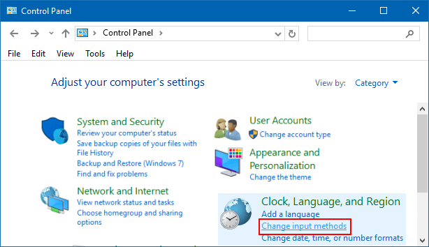 Langkah 2: Dalam panel kawalan, klikTukar kaedah inputDi bawah Kategori Jam, Bahasa, dan Wilayah.