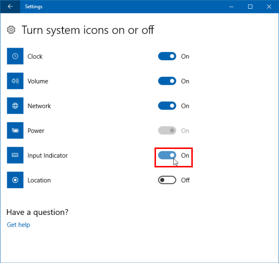 Kaedah 1: Dayakan ikon penunjuk input yang ditunjukkan di kawasan pemberitahuan bar tugas