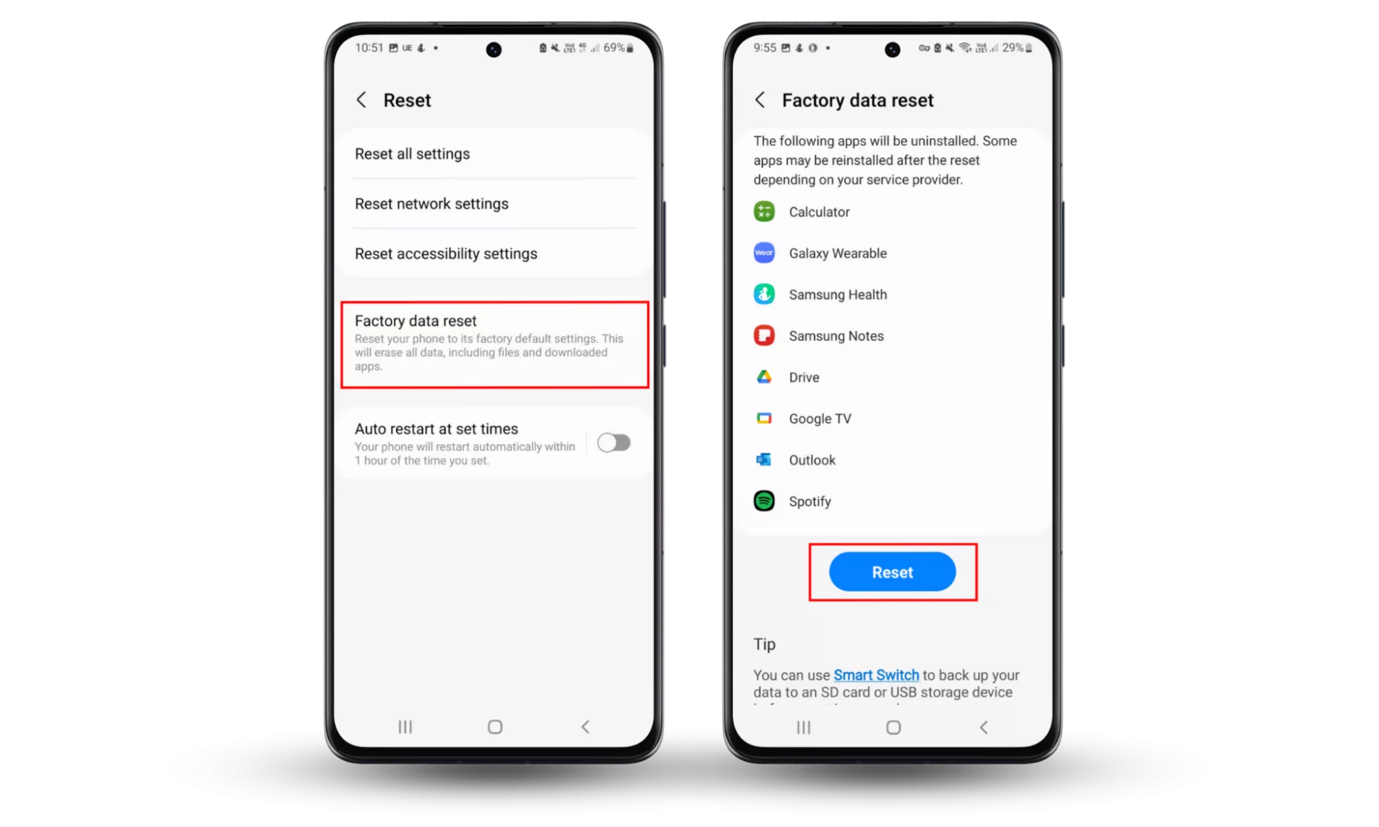 การรีเซ็ตโทรศัพท์ควรเป็นทางเลือกสุดท้าย การทำเช่นนี้จะเป็นการลบไฟล์ แอพ และการตั้งค่าทั้งหมดของคุณ คุณจะสูญเสียเอกสารและข้อมูลทั้งหมดของคุณ!