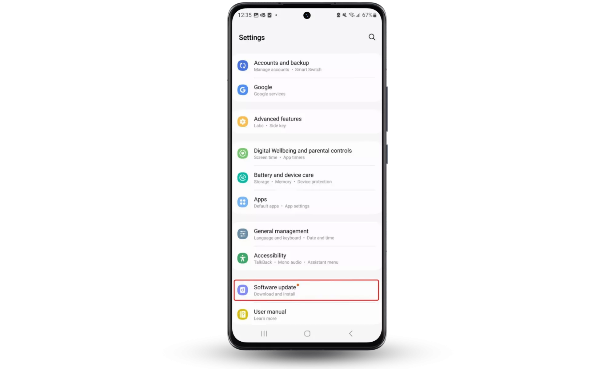 - ไปที่การตั้งค่า > อัปเดตซอฟต์แวร์-