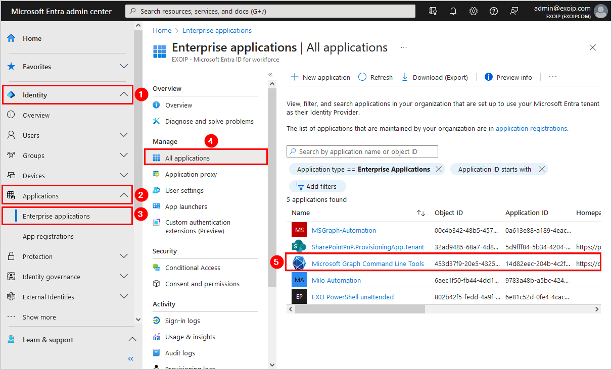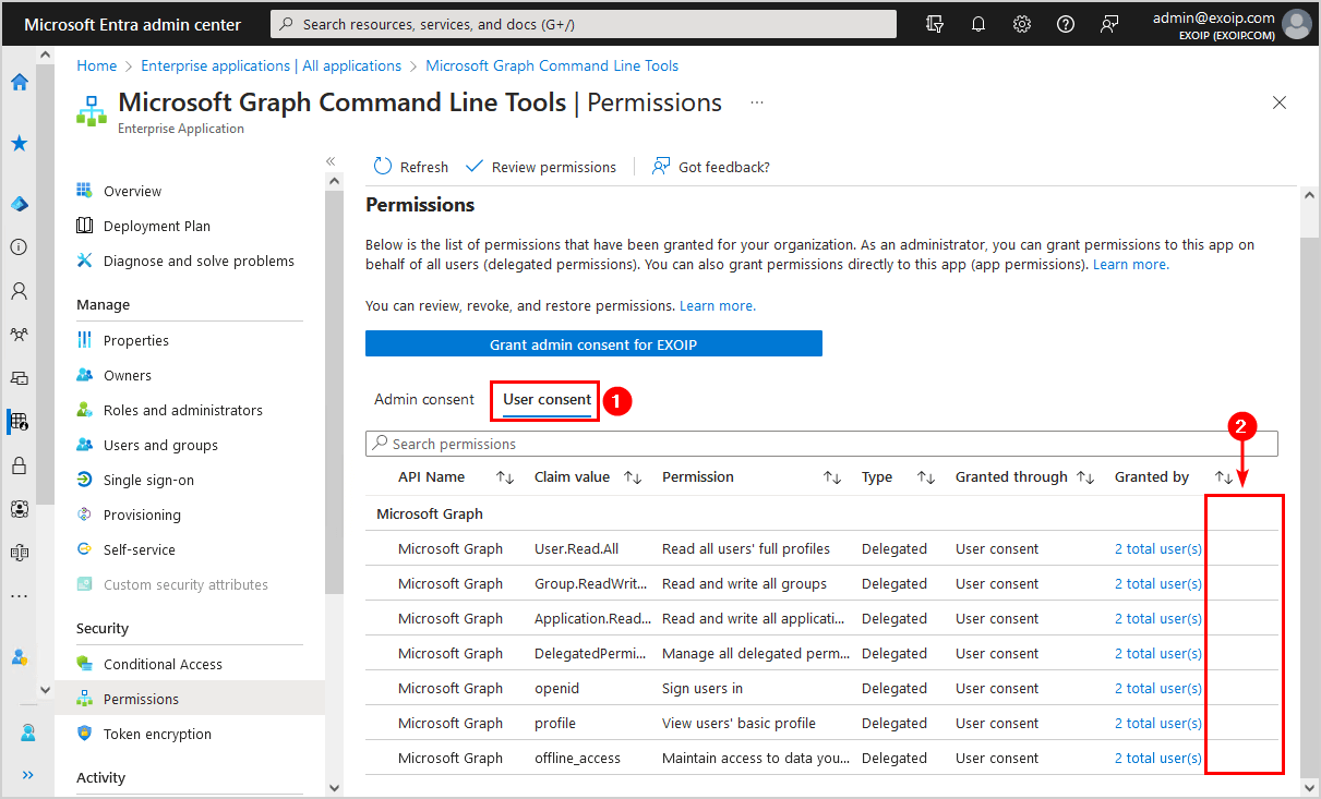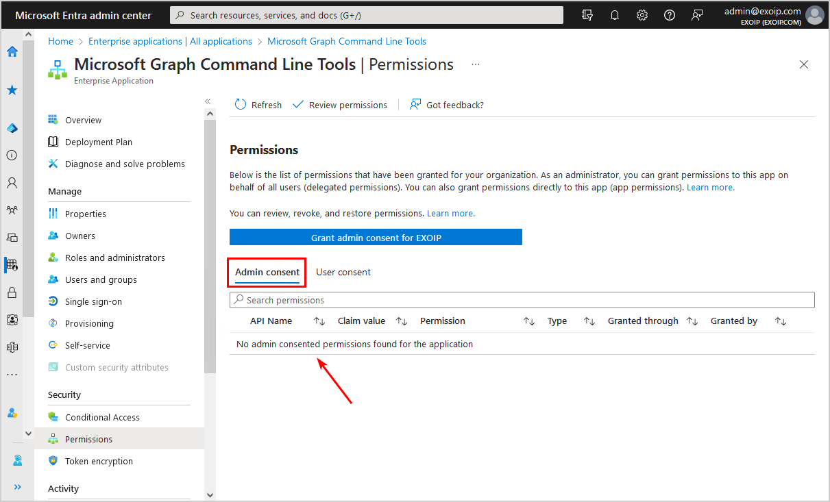 ในขั้นตอนถัดไป เราจะดำเนินการตามขั้นตอนและแสดงวิธีการลบสิทธิ์ผู้ดูแลระบบและความยินยอมของผู้ใช้ออกจากแอปพลิเคชันด้วย PowerShell