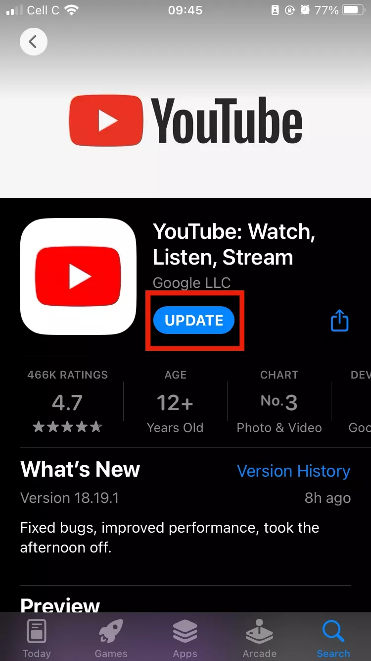 - หากมีการอัปเดตให้แตะดาวน์โหลดและติดตั้งหรือปุ่มที่เกี่ยวข้องและลองใช้แอพอีกครั้งเมื่อการติดตั้งเสร็จสมบูรณ์