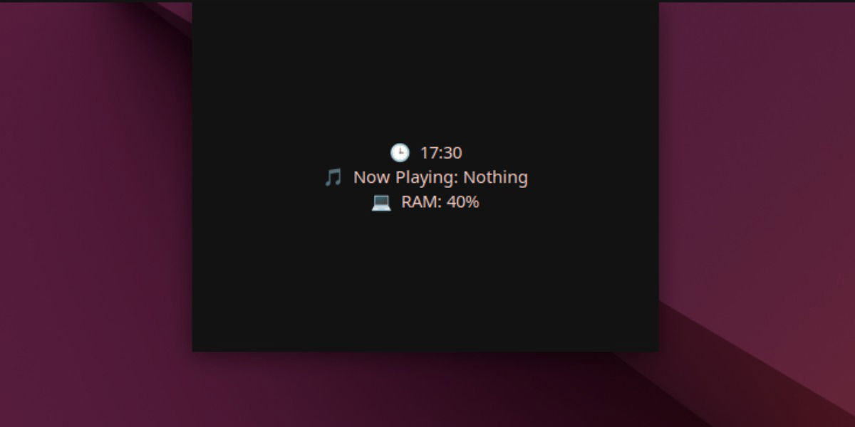 แต่เมื่อฉันเข้าใจพื้นฐานแล้ว ฉันก็เริ่มทดลองใช้วิดเจ็ตที่ซับซ้อนมากขึ้น แสดงสิ่งที่กำลังเล่นอยู่บนระบบของฉัน ตรวจสอบการใช้ RAM ติดตามแบตเตอรี่ เพิ่มนาฬิกา และอื่นๆ อีกมากมาย ทุกอย่างทำงานได้อย่างราบรื่นเมื่อฉันเข้าใจแล้ว